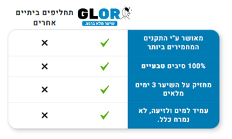 אחרי מחקרים ושיפורים רבים של איכות המוצר שלנו בכל המובנים, הגענו למתכון המושלם שמבדל אותנו מהמתחרים שלנו, ניתן להגיד בוודאות ™GLOR זו הבחירה המושלמת עבורך!