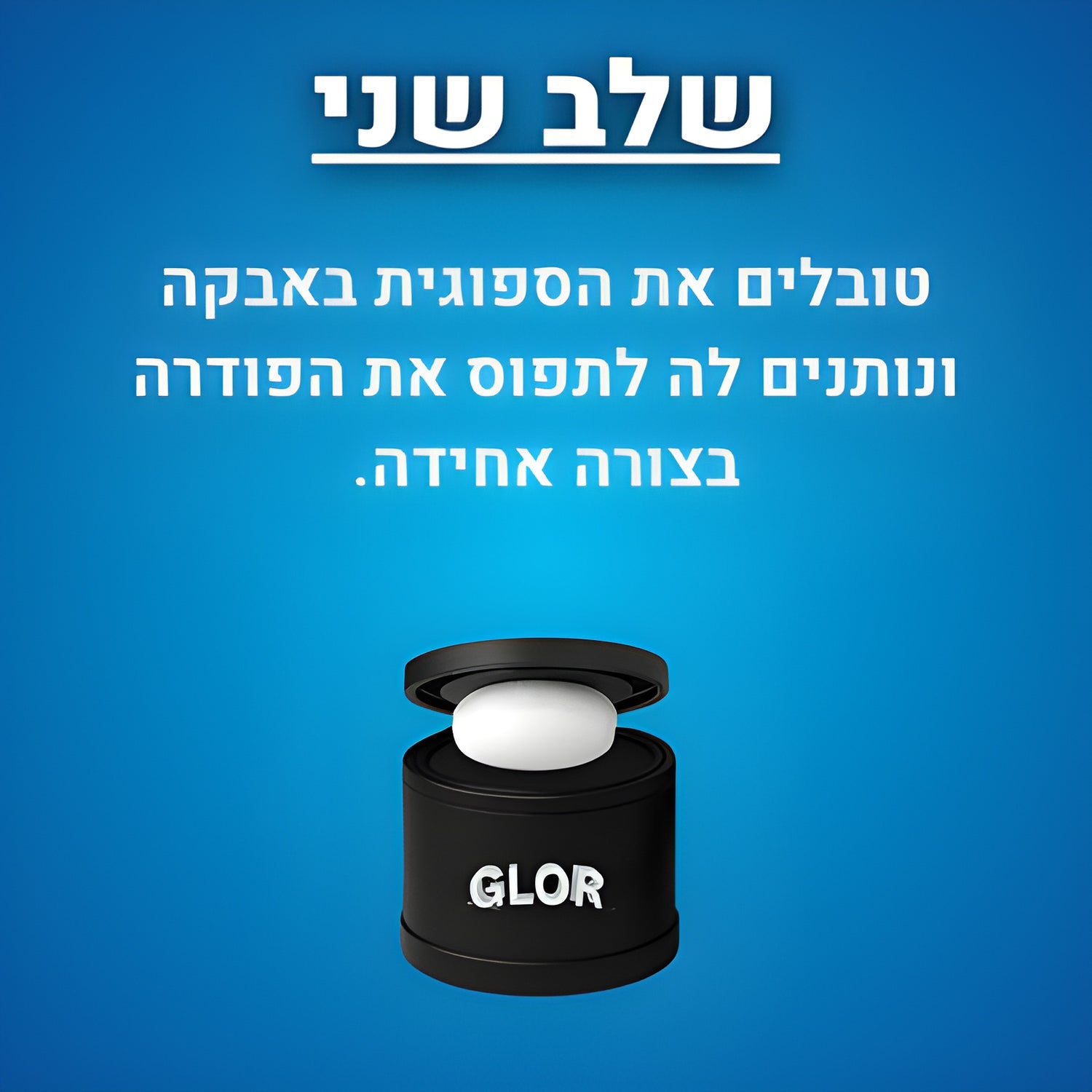 שלב 2: הצמידו את הספוג אל האבקה בטפיחות קלות. בזכות הפורמולה הטבעית של גלור, אין צורך בכמות גדולה כדי להשיג כיסוי אחיד.